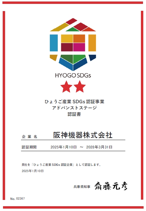 ~ ひょうご産業SDGs認証事業アドバンストステージとして認証されました~